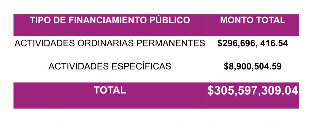 De acuerdo con lo aprobado, el financiamiento públicoqueda de la siguiente manera: