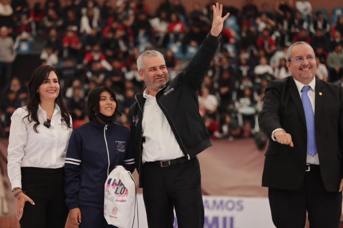 MORELIA, MICH.- Con el objetivo de apoyar la economía familiar e impulsar la permanencia educativa en secundaria, el gobernador Alfredo Ramírez Bedolla, arrancó el programa “Jalo a estudiar” con la entrega de más de 200 mil pares de tenis para estudiantes de secundaria de todo el estado.