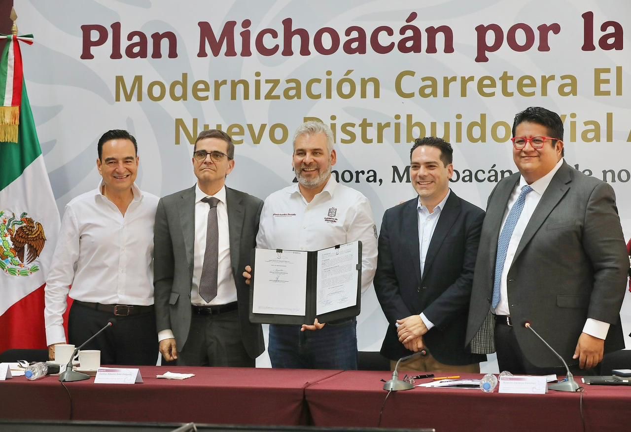 El mandatario firmó un nuevo título de concesión con el director de la empresa Red Carreteras de Occidente (RCO), Gonzalo Alcalde Rodríguez, para la renovación de 3.6 kilómetros de la carretera El Sauz-La Rinconada y la construcción de un distribuidor vial, obras que beneficiarán a los habitantes de Zamora, Ecuandureo, Jacona e Ixtlán.