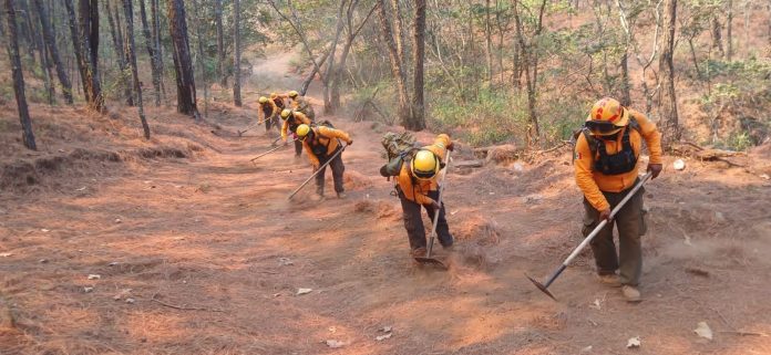 Asimismo, se contó con el apoyo de un helibalde perteneciente al Gobierno del Estado, que realizó nueve descargas el día de ayer en la zona afectada por el fuego.