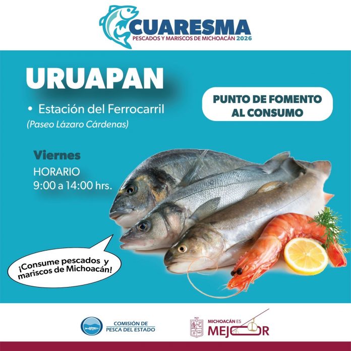 MORELIA, MICH.- La Comisión de Pesca del Estado de Michoacán (Compesca) puso en marcha el Programa de Cuaresma para ofrecer pescados y mariscos de alta calidad a precios accesibles. Esta estrategia busca fomentar el consumo de productos locales y fortalecer la economía familiar, respaldando de manera directa a 125 unidades de producción acuícola.