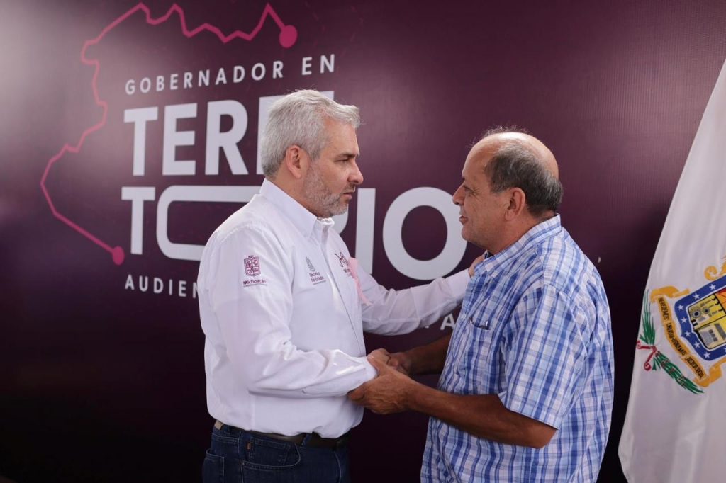 Acompañado por su gabinete legal y ampliado; del alcalde de Uruapan, Carlos Manzo; la diputada federal, Guadalupe Mendoza Arias; delegados federales; así como otras autoridades estatales y municipales, el mandatario recibió peticiones en materia de medio ambiente, agua, campo y movilidad, principalmente.