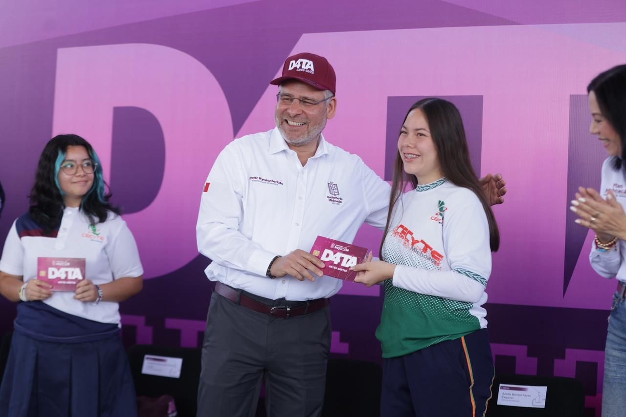 Informó a las y los estudiantes beneficiados que D4TA es posible gracias a la donación de 200 mil chips que hizo la Comisión Federal de Electricidad (CFE), como parte del Plan Michoacán por la Paz y la Justicia; mientras que su gobierno absorberá el pago de 116 mil planes de internet para los estudiantes registrados de preparatorias, institutos tecnológicos y universidades públicas del estado.