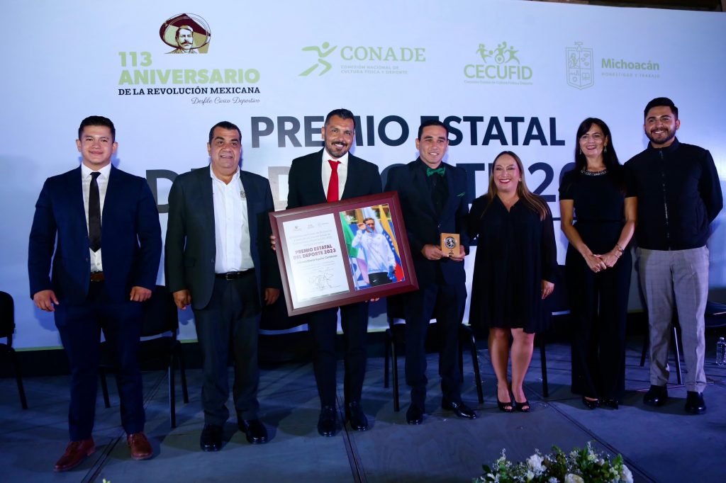 El Premio Estatal del Deporte consta de 110 mil pesos y es el máximo reconocimiento que entrega la Comisión Nacional de Cultura Física y Deporte (Conade), a través de los institutos estatales, al mejor deportista, entrenador o institución que así lo avale su año deportivo, en este caso, al surfista oriundo de Playa Azul, Lázaro Cárdenas, quien fue elegido el pasado 24 de octubre en reunión encabezada por Tello Pimentel.