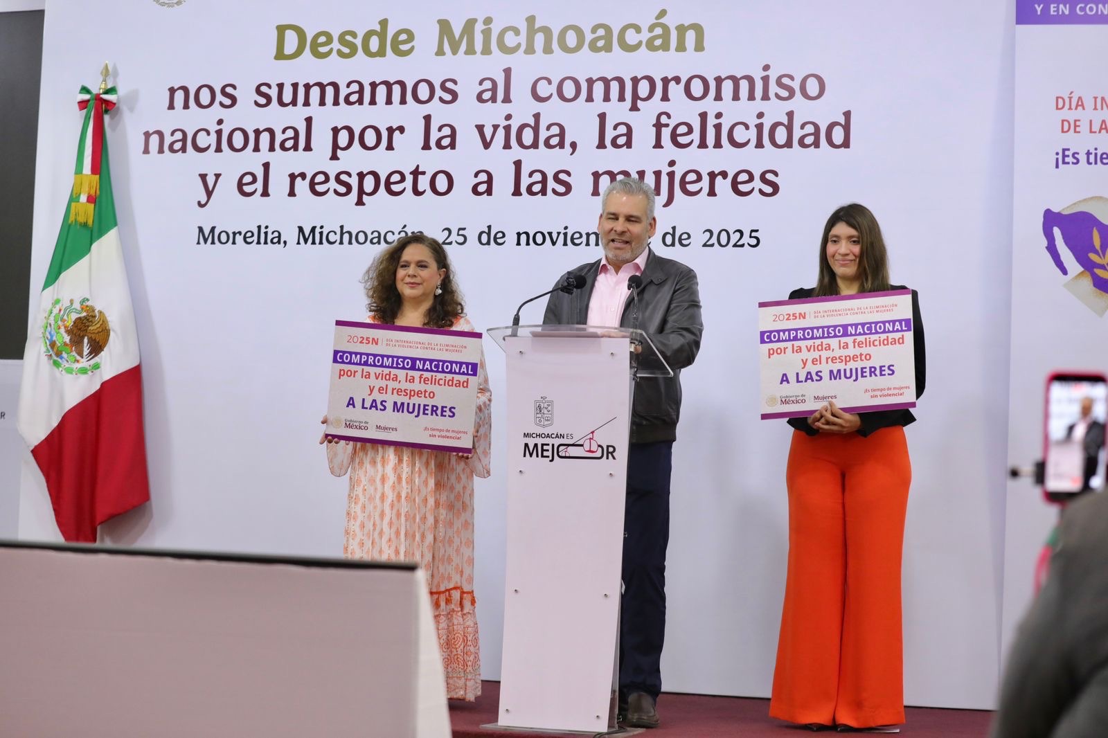 MORELIA, MICH.- Michoacán se suma al compromiso nacional por la vida, la felicidad y el respeto a las mujeres, reafirmó el gobernador Alfredo Ramírez Bedolla, en el marco del Día Internacional de la Eliminación de la Violencia contra las Mujeres.