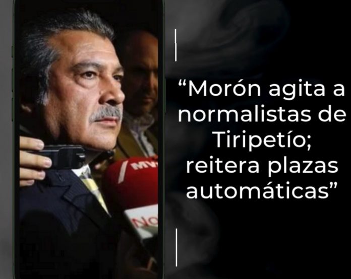 MORELIA, MICH.- El senador Raúl Morón Orozco reapareció en la Escuela Normal Rural “Vasco de Quiroga” de Tiripetío con un discurso que, bajo la fachada de análisis académico, buscó reactivar la movilización magisterial y presionar por el regreso de las plazas automáticas para egresados normalistas.