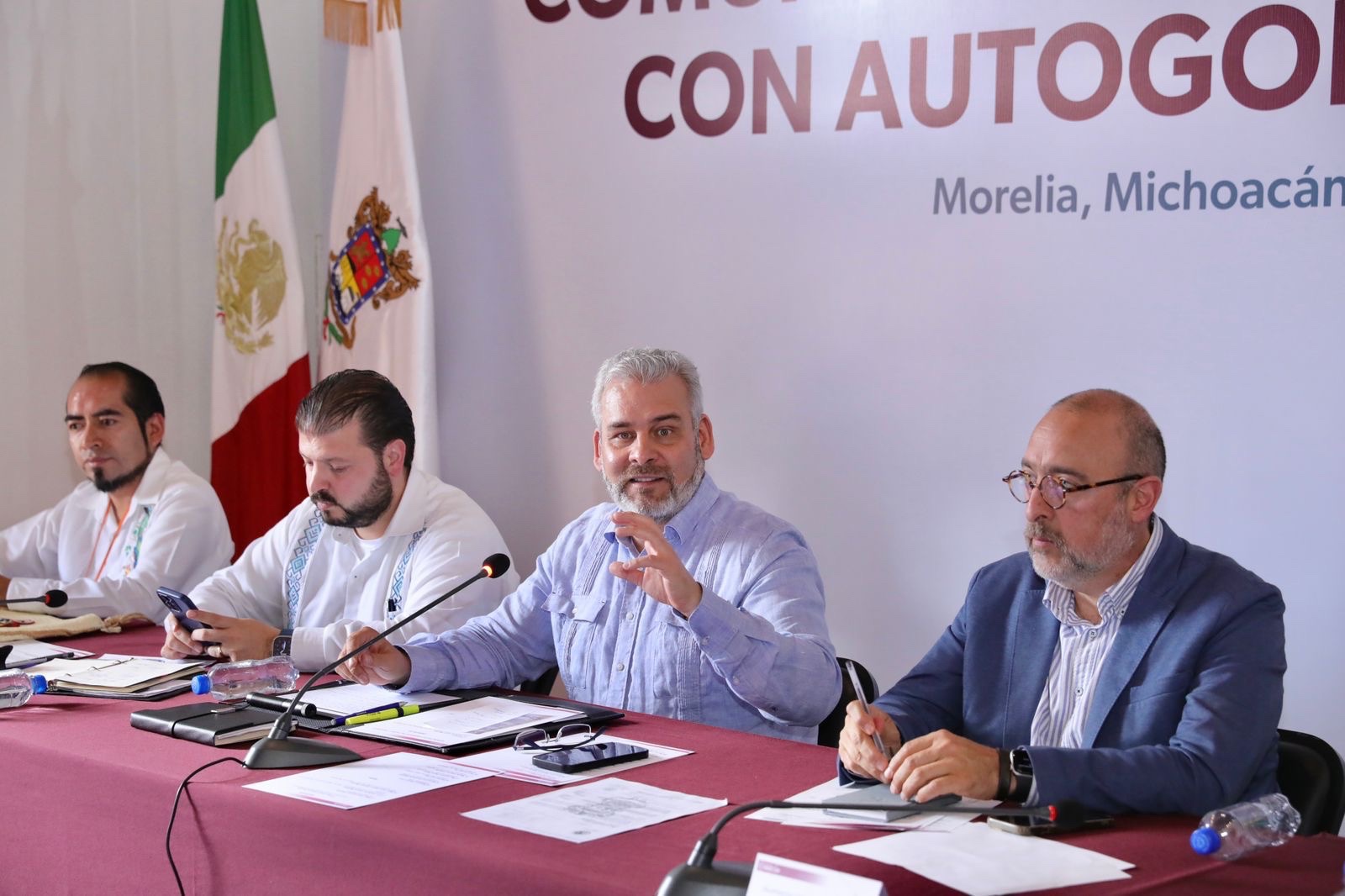 Acompañaron al gobernador el secretario de Gobierno, Raúl Zepeda Villaseñor; el subsecretario de Enlace Legislativo y Asuntos Registrales, Humberto Urquiza Martínez; y el representante del Consejo Supremo Indígena de Michoacán, Pavel Ulianov Guzmán Macario.