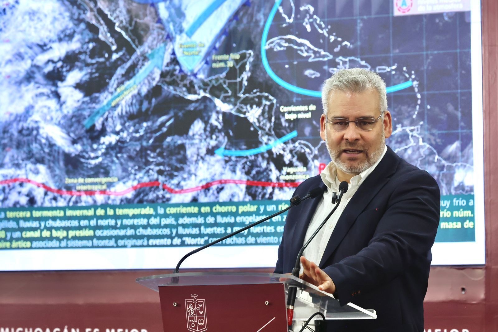 MORELIA, MICH.- El gobernador Alfredo Ramírez Bedolla informó que, ante las bajas temperaturas que se pronostican para las próximas horas en Michoacán, la Coordinación Estatal de Protección Civil está preparada para atender cualquier emergencia.