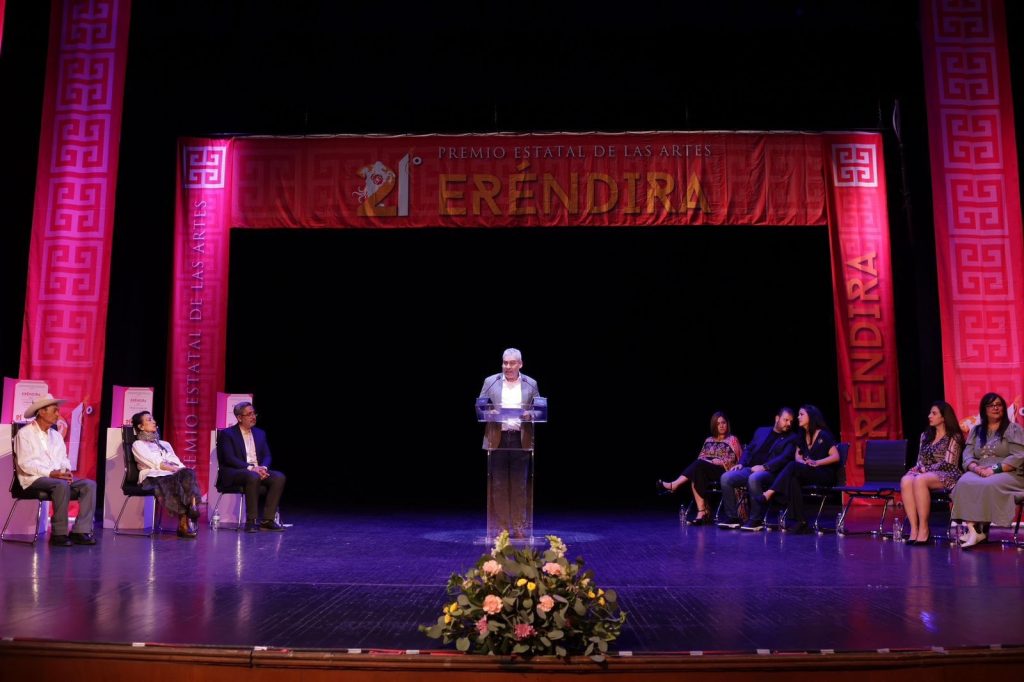 “Hoy el símbolo de Eréndira cobra vida entre nosotros y se encarna en estos tres grandes artistas cuyas obras son un legado que trasciende fronteras y engrandece lo mejor de nuestro Michoacán. Su arte es un tesoro invaluable, un acto de resistencia creativa que protege y expresa las raíces culturales y la identidad de nuestro pueblo”, expresó.