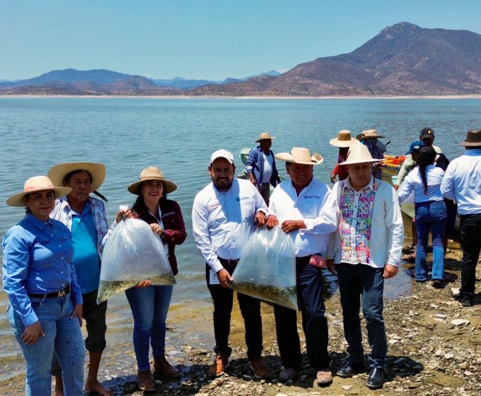 CHURUMUCO, MICH.- Con el compromiso de fortalecer al sector pesquero y garantizar la seguridad alimentaria en la Tierra Caliente, la Comisión de Pesca del Estado (Compesca) realizó la siembra de 150 mil crías de tilapia en la presa Adolfo López Mateos, en el municipio de Churumuco.