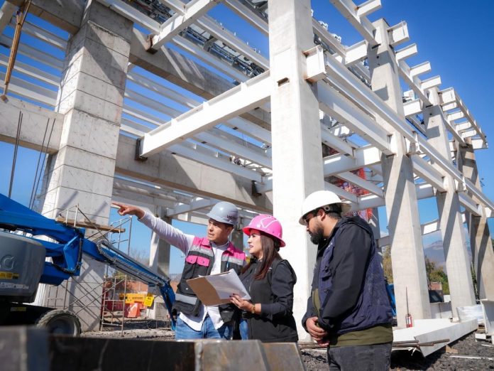 MORELIA, MICH.- La secretaria de Desarrollo Urbano y Movilidad, Gladyz Butanda Macías, supervisa la construcción del garaje donde se almacenarán las cabinas del teleférico de Morelia, en la Estación 1 del Estadio Morelos.